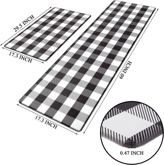 anti Fatigue Kitchen Mat Set of 2 Farmhouse Kitchen Rugs and Mats Non Slip Thick Cushioned Kitchen Floor Mats Waterproof Heavy Duty PVC Foam Kitchen Rug Runner Comfort Standing Mat Black