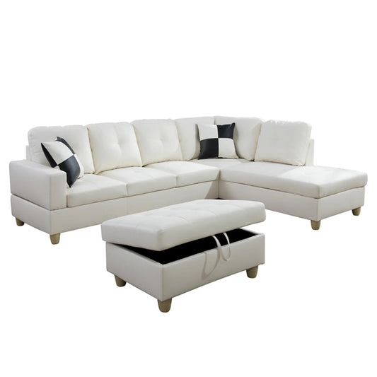 Convertible Sectional Sofa, L Shaped Couch for Small Space Living Room, White(Without Ottoman)